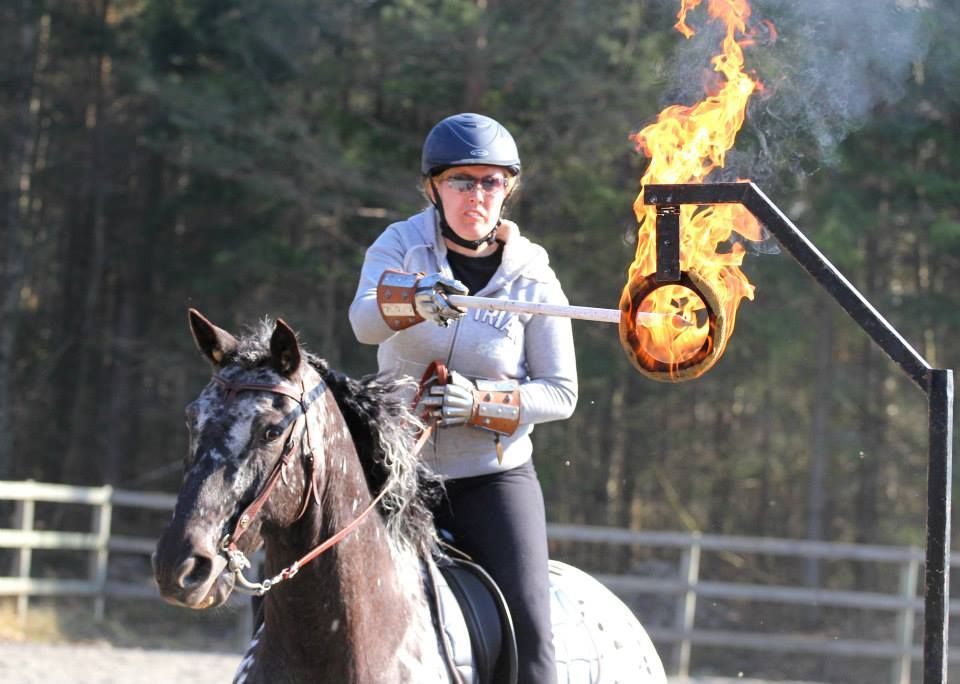 When I asked Asa Cidh -- who is actually a member of the jousting group Celeres Nordica, but was practicing with Infensus that day -- how the riders kept the fiery ring from burning themselves or their horses, she answered: