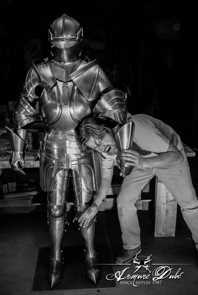 Eric Dubé of Armure Dubé and his replica of the Earl of Warwick 1439 armour