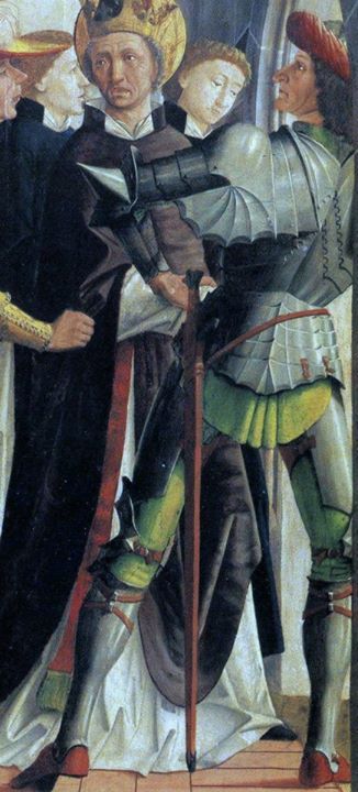 A detail of the altar painting, c1465, by Michael Pacher at the parish church of St Lawrence, originally in Southern Tyrol, now in the Austrian Gallery in Vienna and a photo of the back of Andreas Wenzel's armour(photo from Destrier)