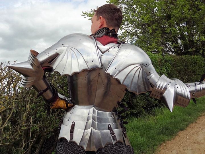 Well, I think I have mentioned before that many of Destrier’s members have a keen interest in 15th century armour. We love discussing it, and comparing it, and competing for the best and shiniest harness – it’s part of what makes us Destrier. There’s little more exciting for me than one of our members turning up with a new piece of armour.