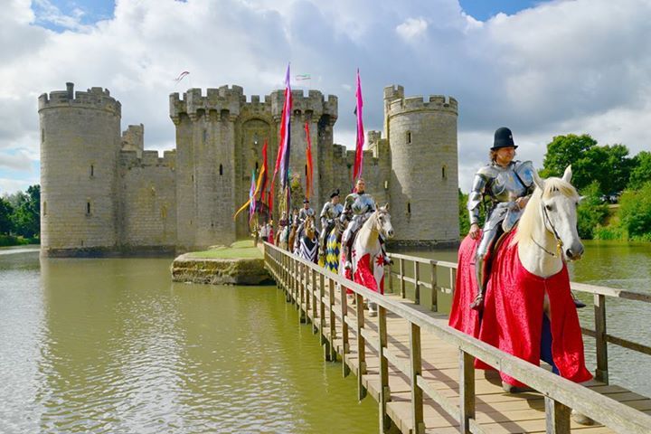 Destrier jouster Jason Kingsley leads other members of Destrier across the bridge at Bodiam Castle(photo by Richard Pearn)